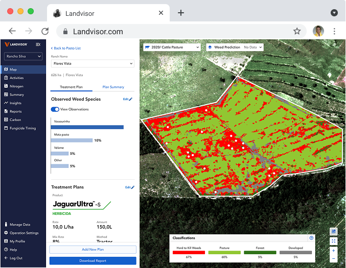 Landvisor Brazil, built by Corteva Agriscience, gives Brazilian pasture ranchers a high-tech way to monitor and manage undesirable weeds through satellite imagery combined with AI. It identifies weed density across acres of fields, before it becomes a costly problem.