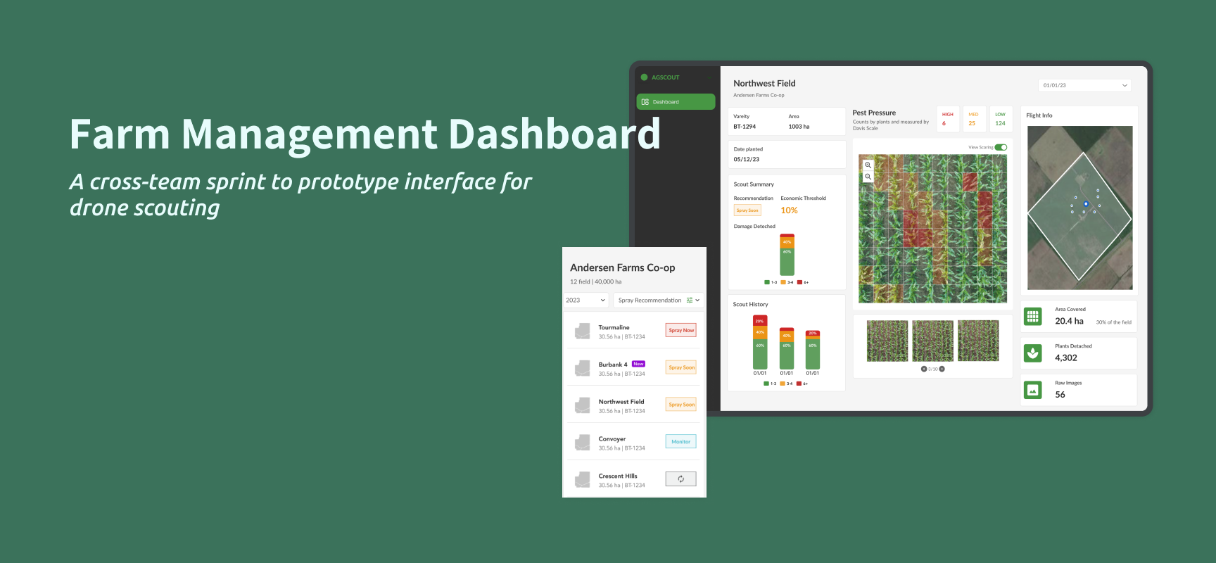 The agriculture industry has seen significant growth and innovation. Yet, many growers still rely on labor intensive methods of scouting their fields. On average, it takes 3 hours to scout a field on foot, and only covers a small percentage of the field.